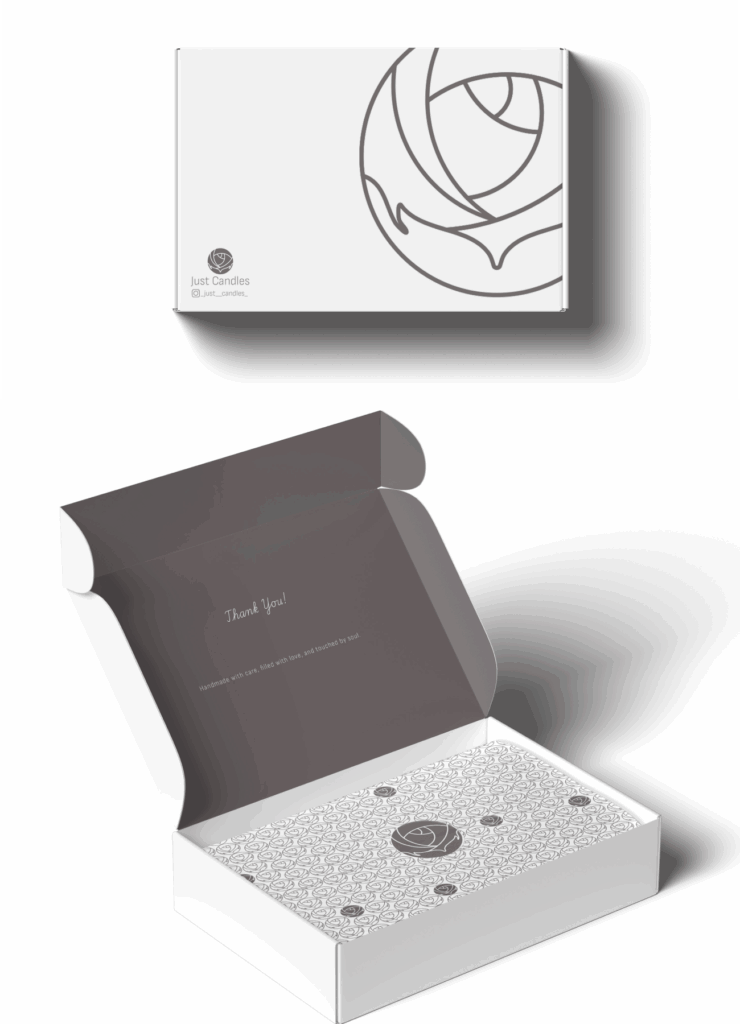 The packaging follows the brand’s clean and simple aesthetic, highlighting minimalism and ease of use. It is designed to work equally well for a single candle or a set of several, keeping the product safe while maintaining a refined look. Created with care for the customer, the packaging also features a subtle pattern that complements the design.
